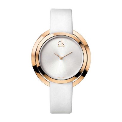 The Calvin Klein City Features Stamped Horizontal Lines In A Silver, Black Or Blue Dial With A Polished Stainless Steel Circular Case.